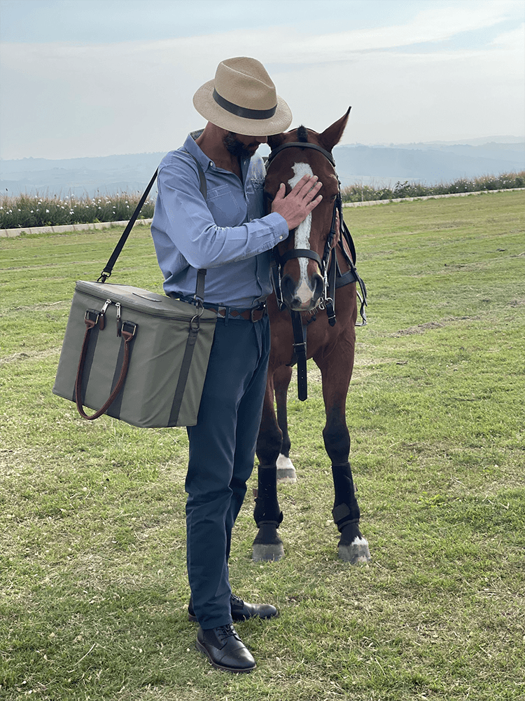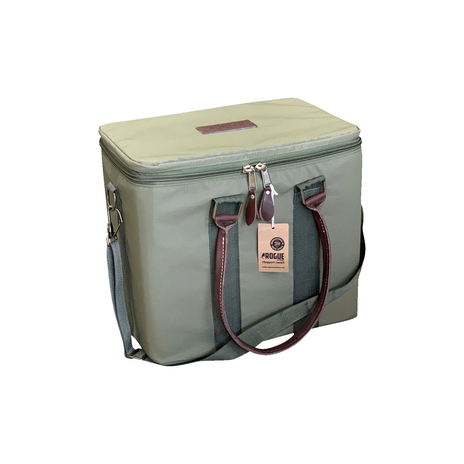 A foam insulated military canvas outer clads a hard moulded inner ice box. Here’s practical rigidity presented in a soft outer, with genuine leather accessories. Perfect for that weekend braai or social gathering.