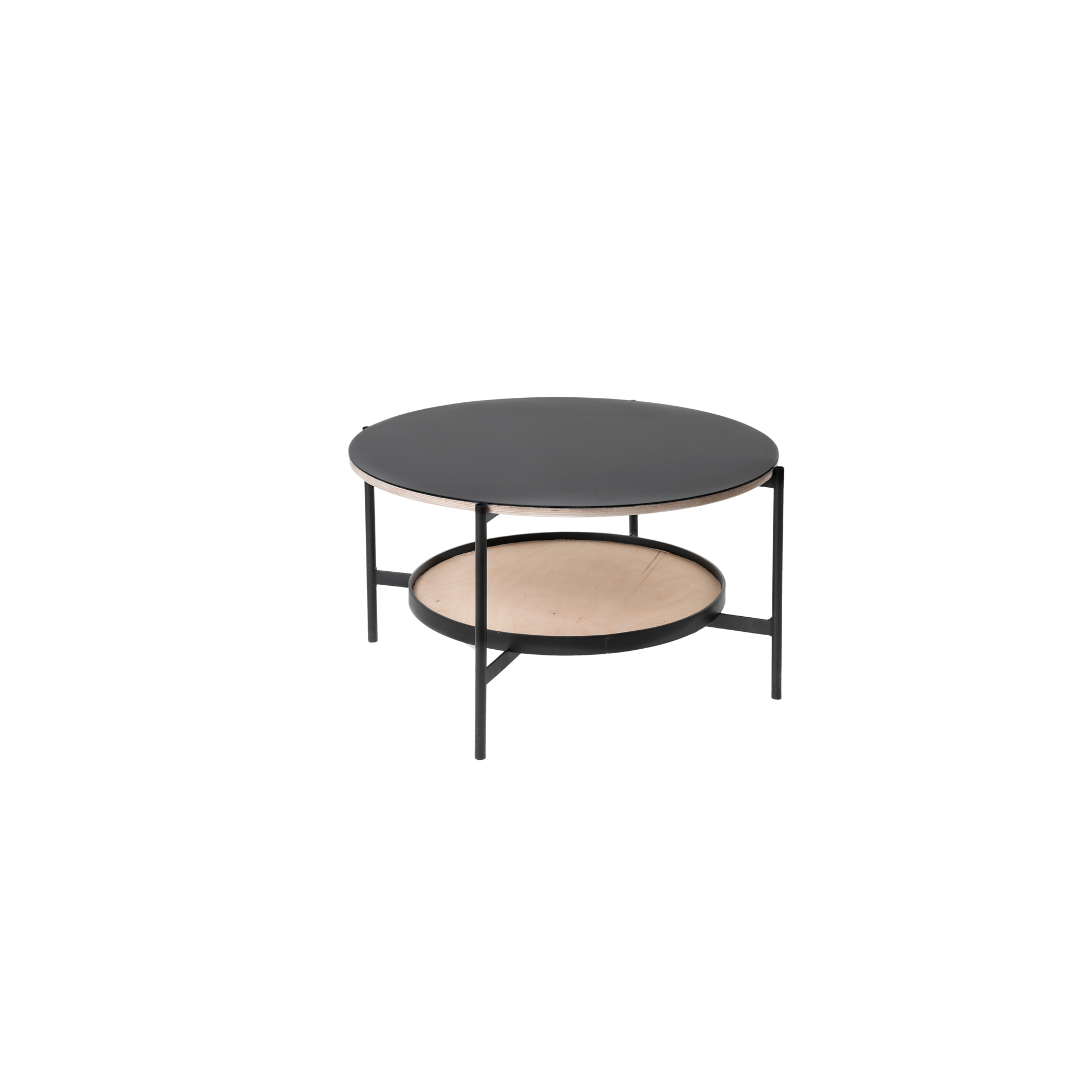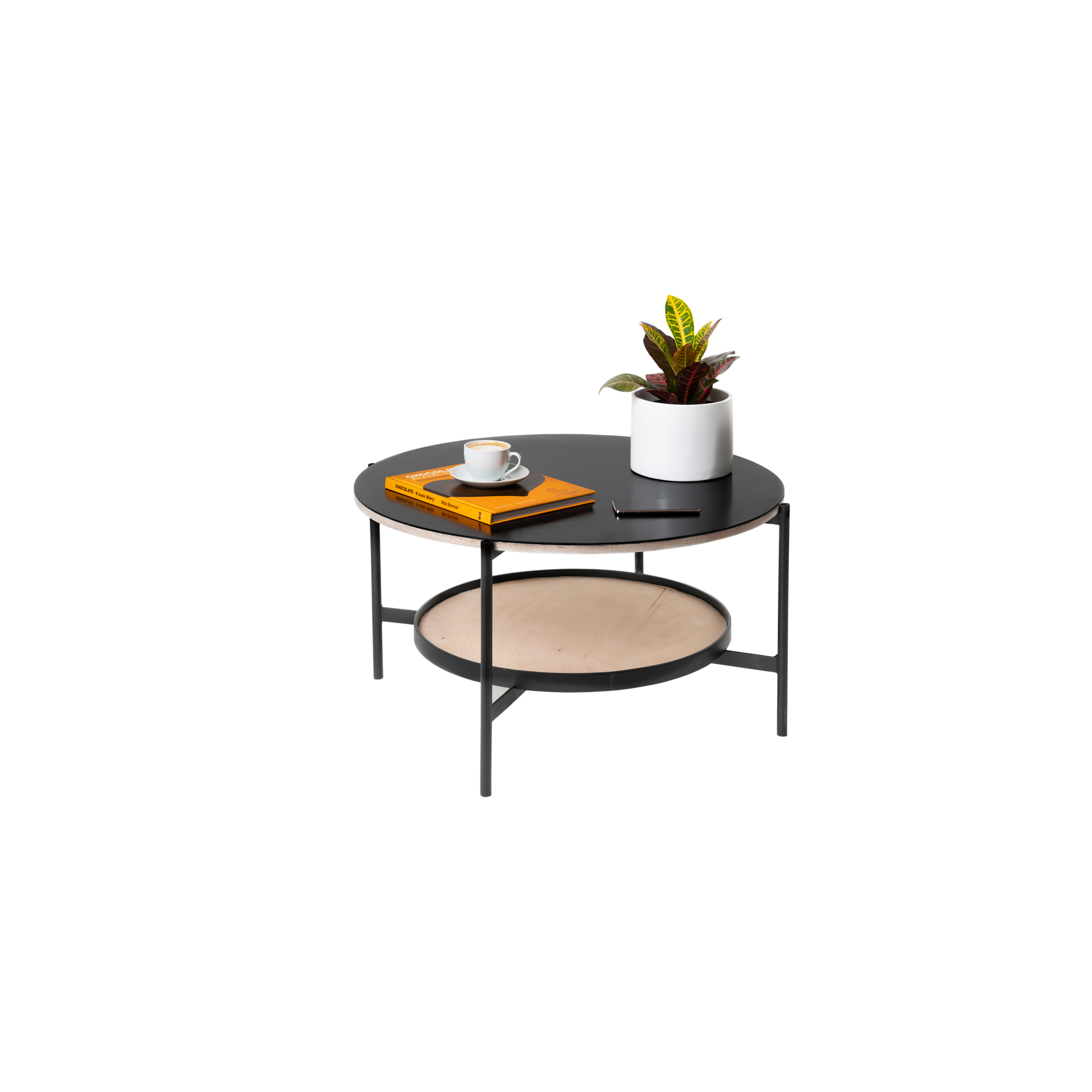 A simple yet functional round coffee table with storage space in the lower shelf means your living room can be organized while looking minimal. The marriage of sustainable Birch Plywood and black trimmings means this table will blend in with most contemporary living rooms that showcase nature elements.