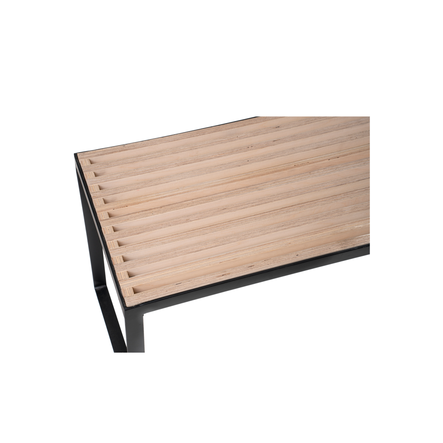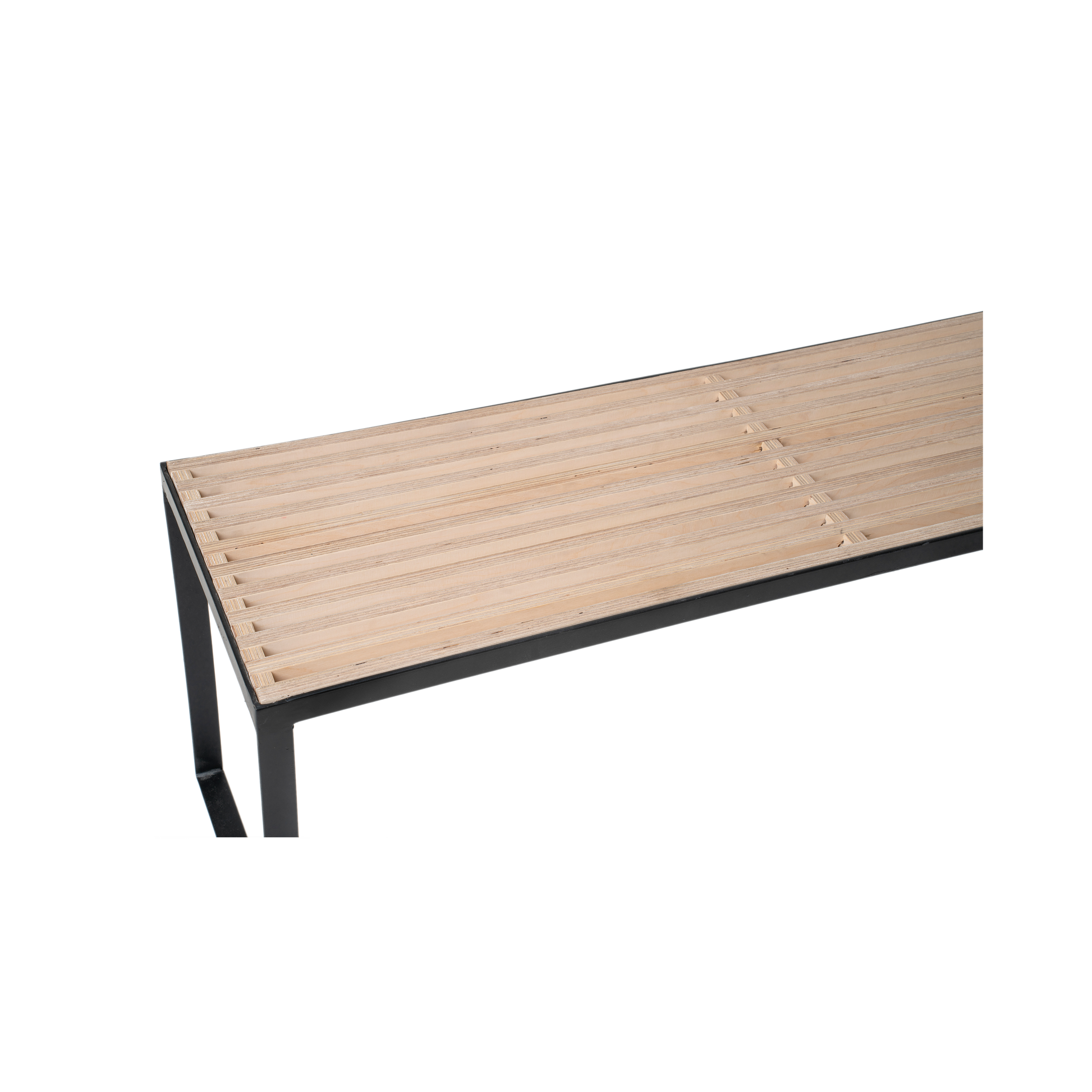 Whether you're using it in your entryway while you put your shoes on or as ancillary seating at the foot of your bed, the Avani Slat Bench will bring function and fashion to your everyday living. Black steel and Birch Plywood create a striking partnership with strong linear visuals. Suitable for outdoor use under cover from rain.