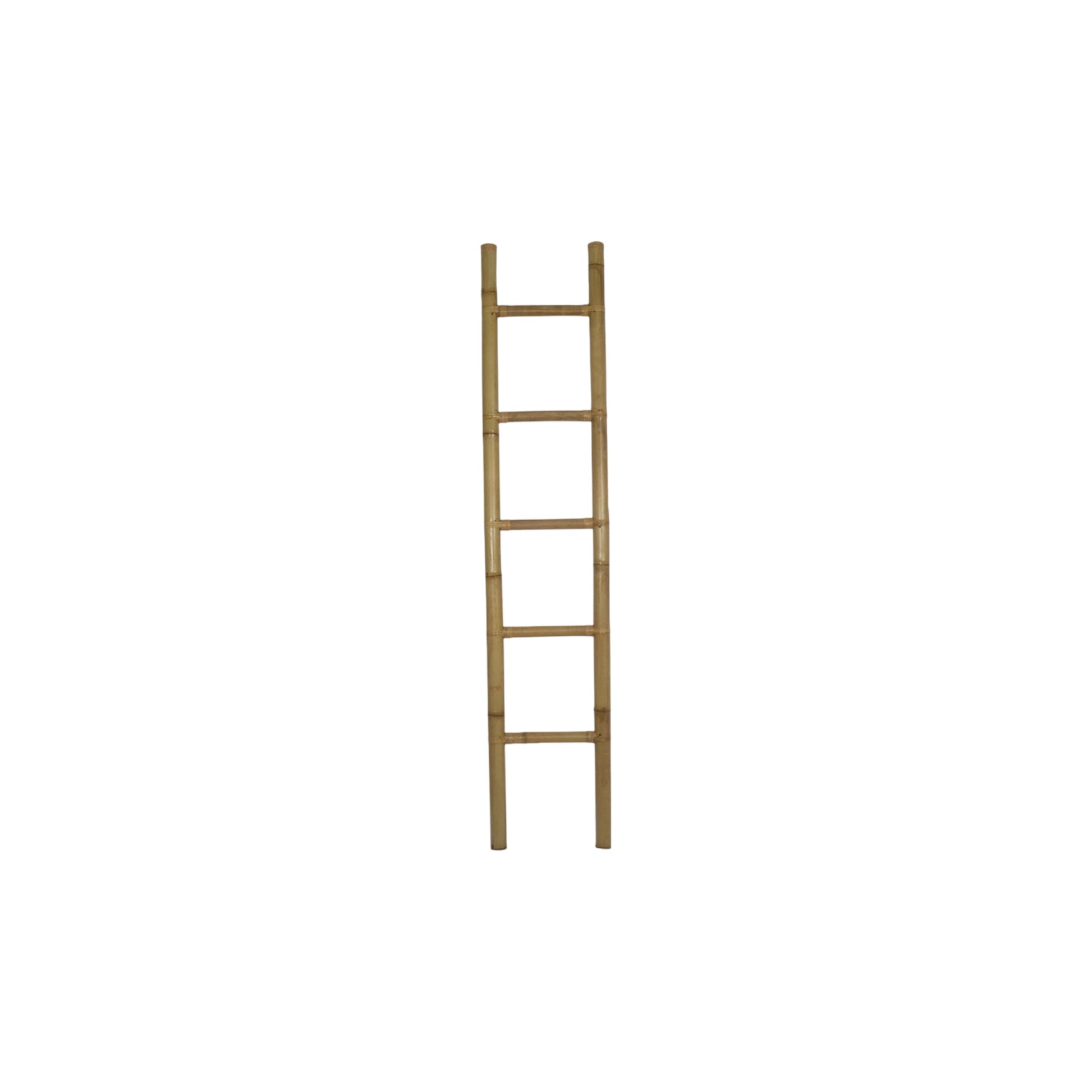 This bamboo ladder is a simple yet striking accent piece, crafted from natural bamboo with a warm, organic finish. Designed to lean effortlessly against the wall, it offers a stylish way to display towels, throws, or clothing while adding height and texture to a space. The clean lines and handcrafted feel make it a perfect fit for bathrooms, bedrooms, or living areas. Both functional and decorative, this ladder brings an easy, relaxed elegance inspired by natural materials.