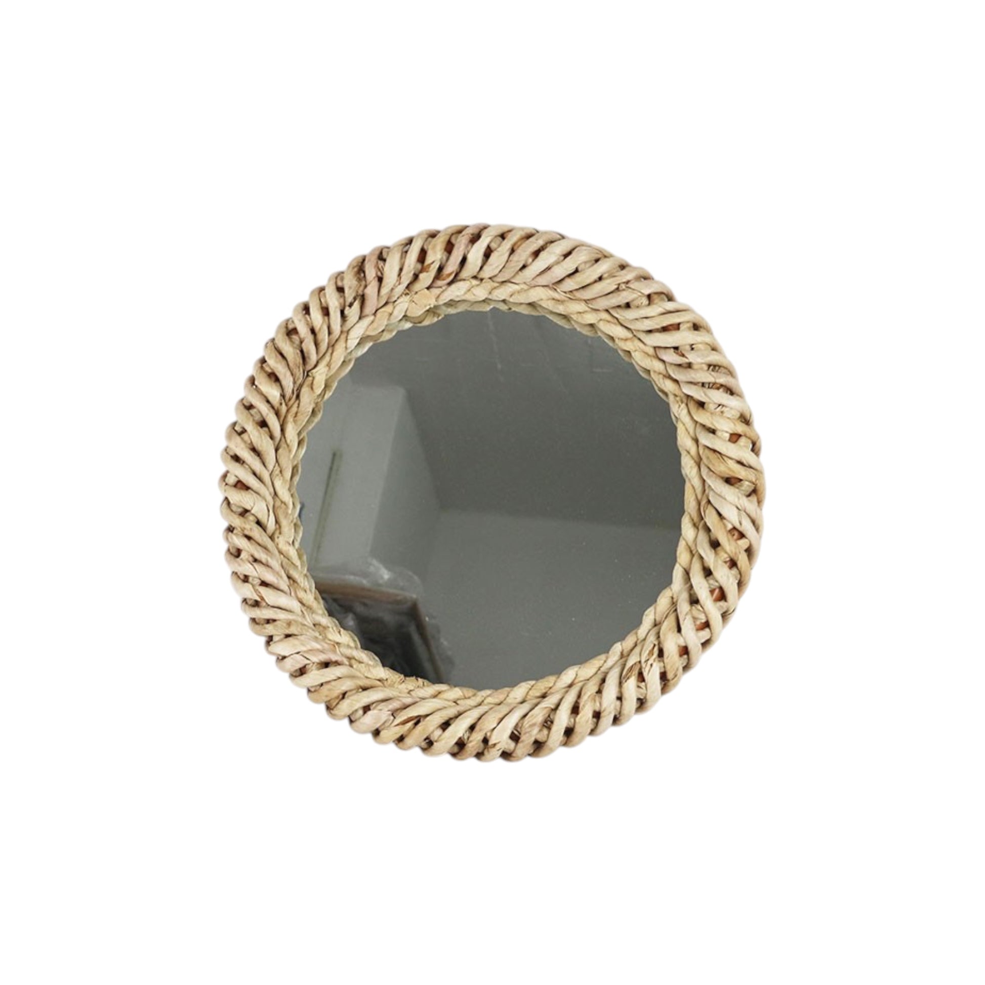 This handcrafted round mirror features a beautifully braided banana leaf frame, bringing warmth, texture, and an organic feel to any space. The intricate woven detailing creates visual interest while maintaining a soft, neutral palette that complements both modern and relaxed interiors. Perfect for bedrooms, living areas, or entryways, this mirror adds depth and character while reflecting light effortlessly. A timeless piece that celebrates natural materials and artisanal craftsmanship.