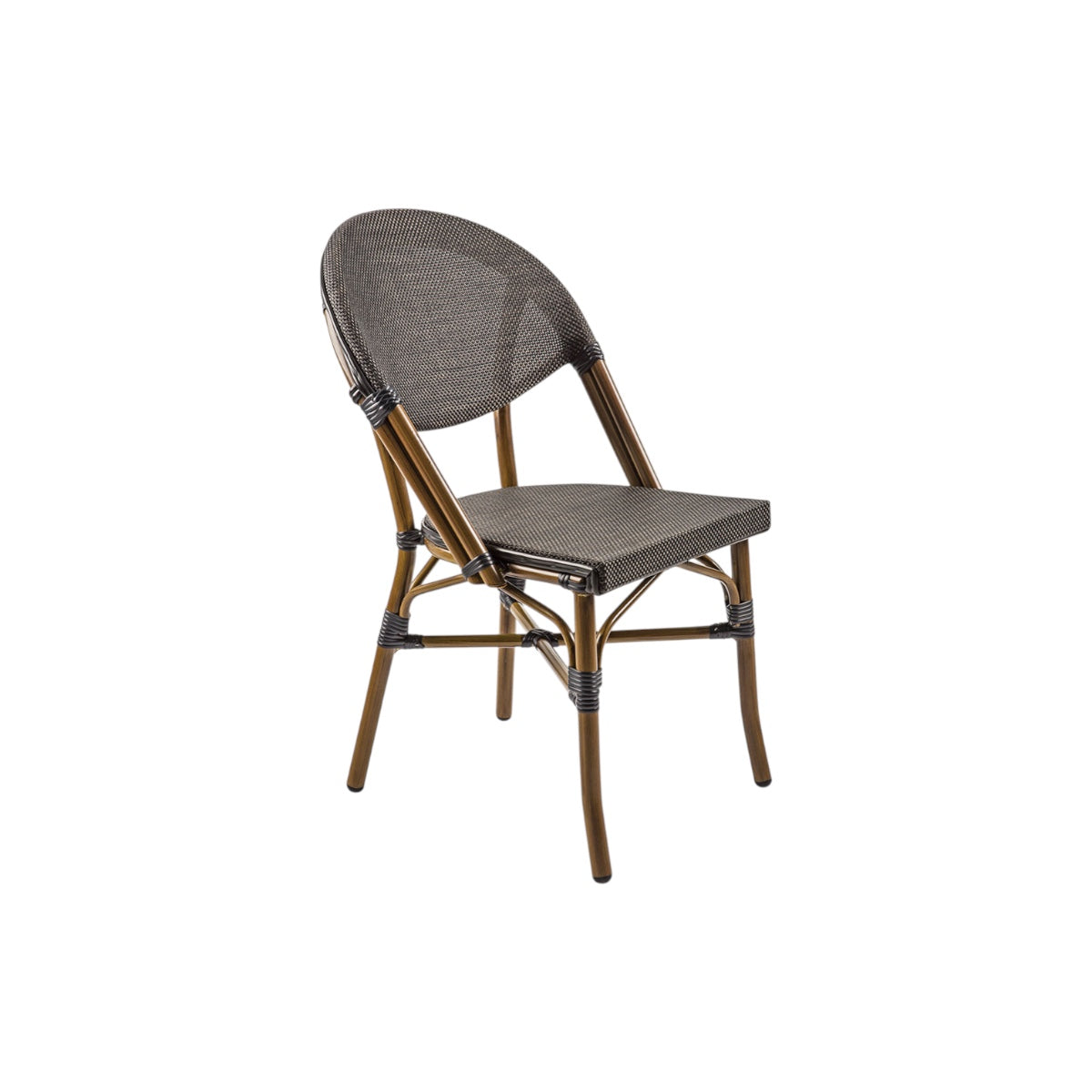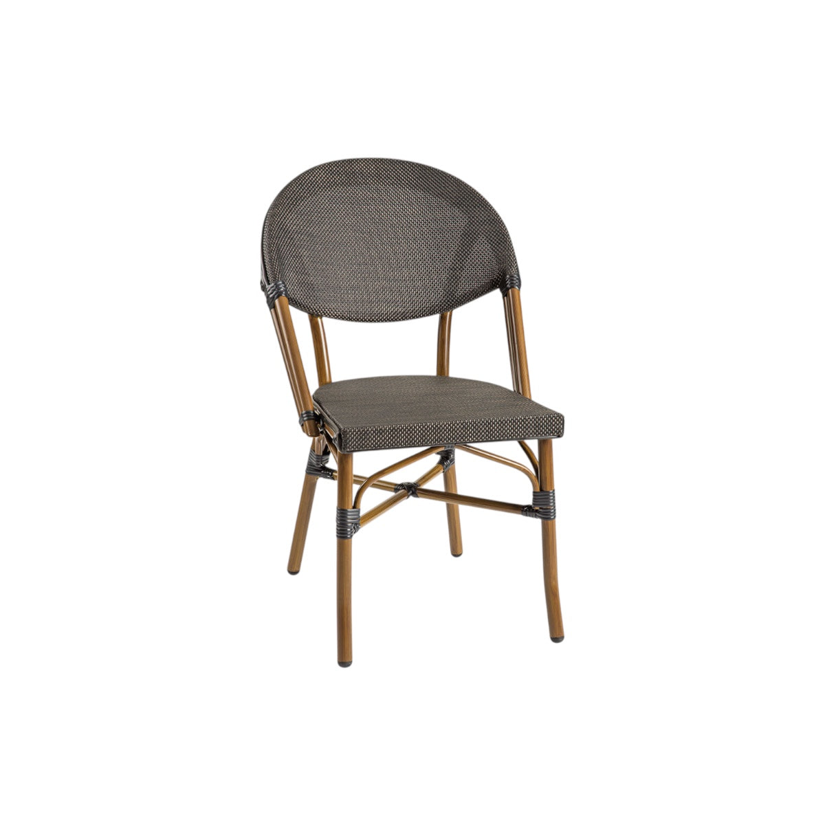 The Casa Outdoor Cafe Chair offers a durable solution for stylish outdoor seating. Featuring an aluminum frame that mimics the natural texture of bamboo, it combines elegance with strength. The weather proof Textilene mesh seat and back is designed to withstand the elements, ensuring lasting beauty. Additionally, the chairs are stackable for convenient storage.