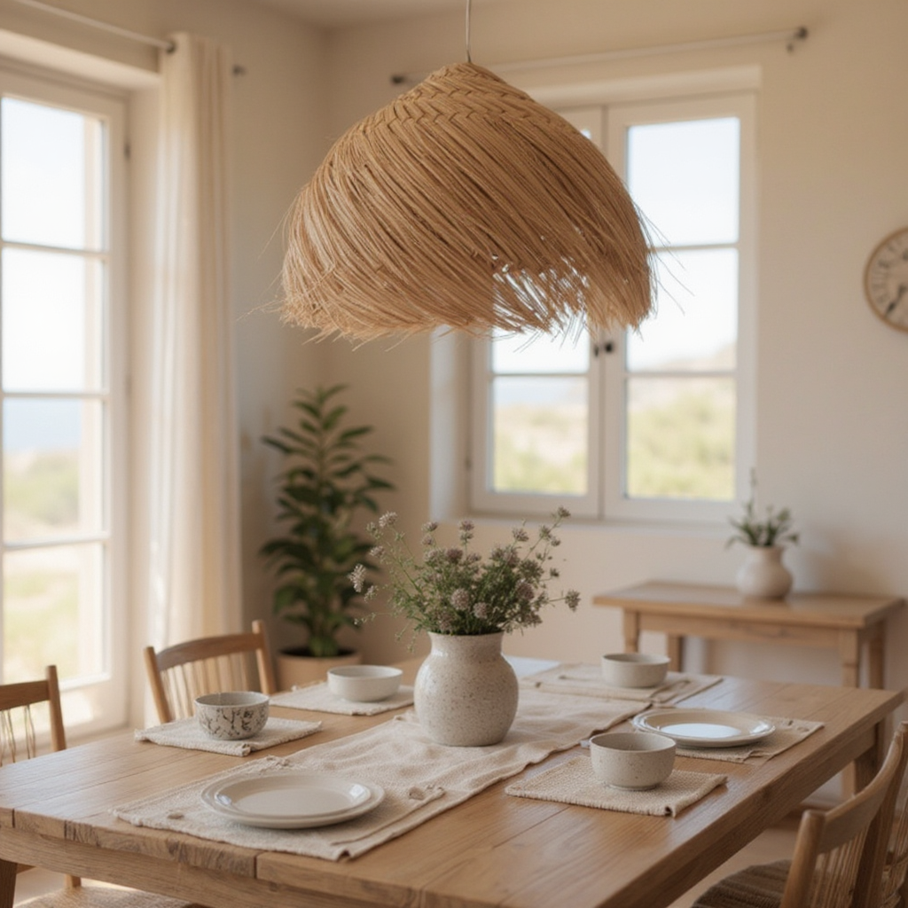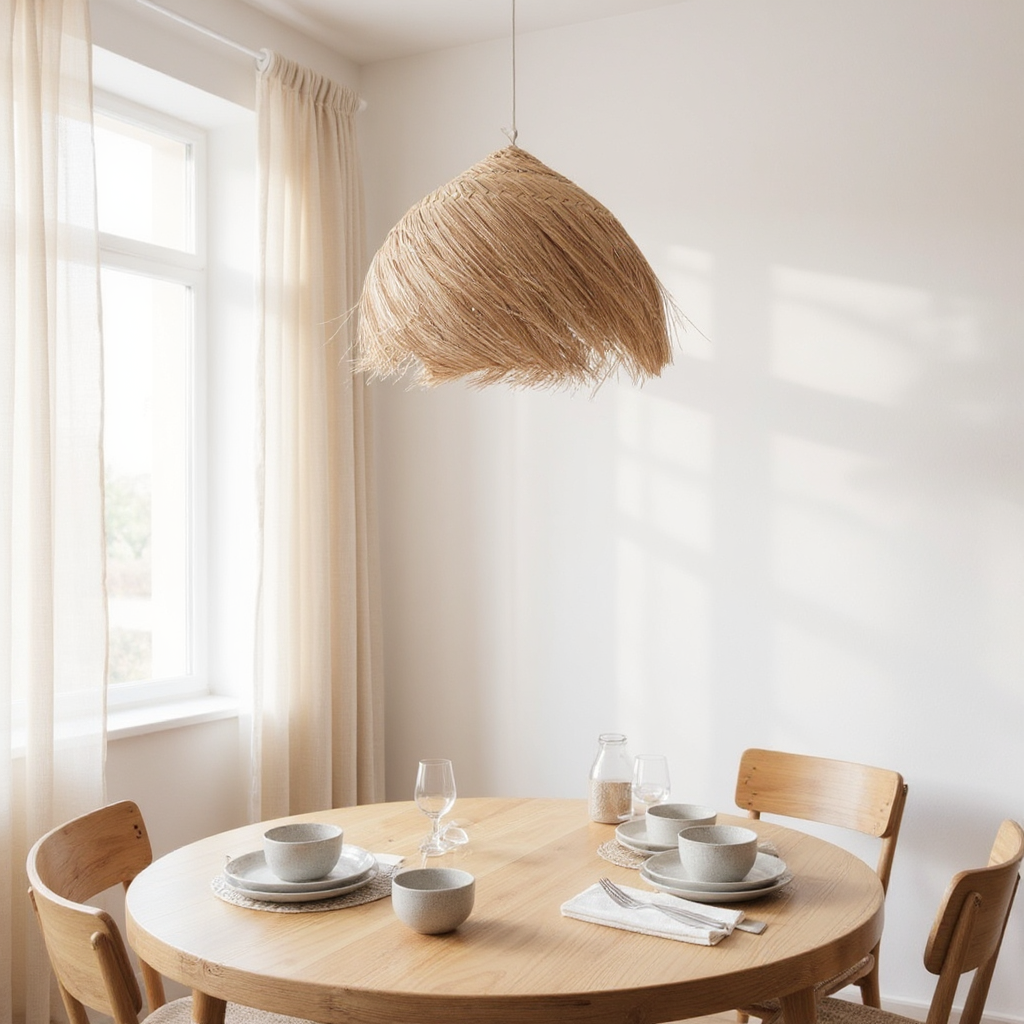 Bring a touch of natural warmth into your home with the Coastal Breeze Pendant Light. Handcrafted from woven natural fibers, this pendant features a relaxed, organic shape that softly diffuses light while adding texture and charm to any space. The layered raffia-style shade creates a breezy, laid-back aesthetic, perfect for coastal-inspired interiors, bohemian retreats, or modern spaces needing an earthy accent. Whether suspended over a dining table, kitchen island, or in a cozy reading nook, this pendant light adds an inviting glow and a touch of nature indoors.