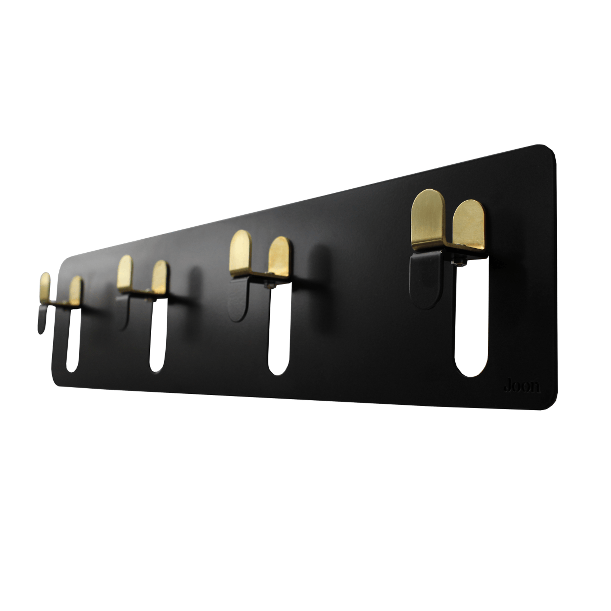 Can be used for hanging up coats and keys in the entrance hall, pots and pans in the kitchen or towels and robes in the bathroom. All colours are paired with black hooks as a default.