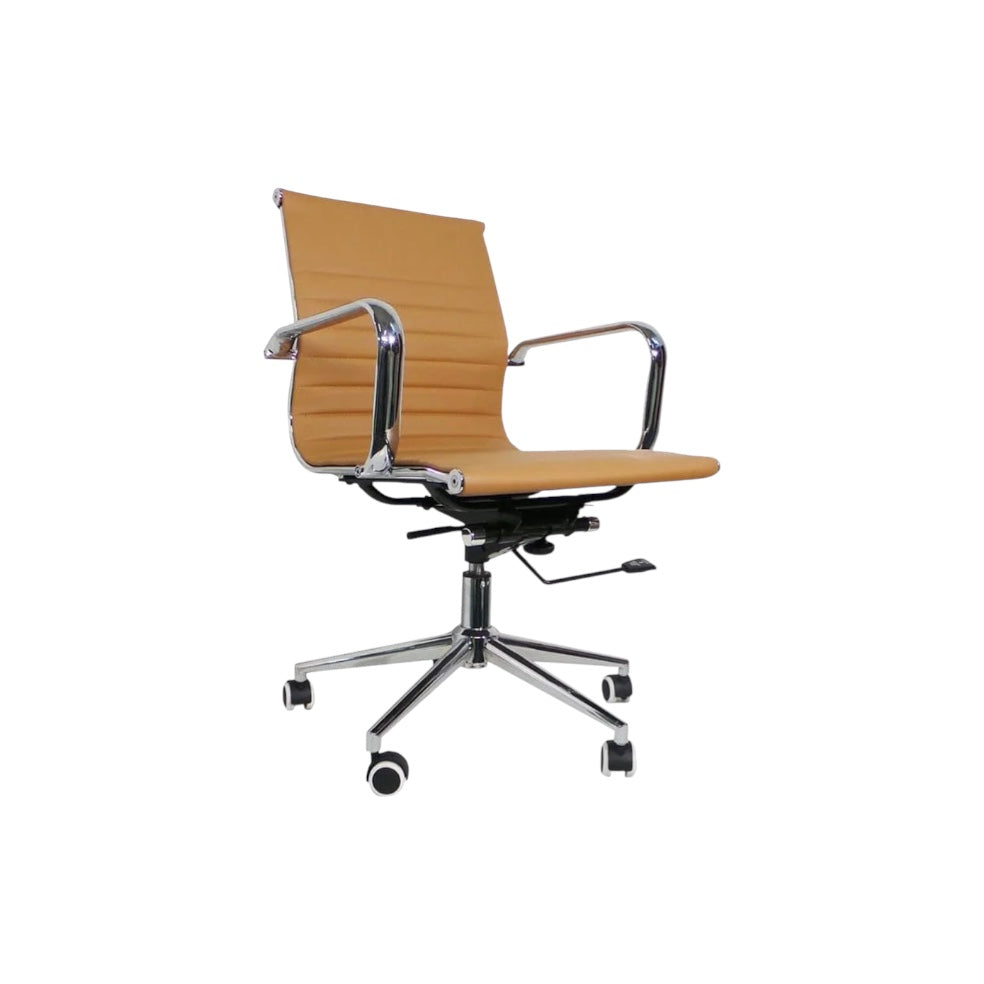 This office chair exudes refinement, elegance, and modern charm. Blending premium style with comfort and functionality, it is celebrated for its smooth, flowing contours and striking silhouette. The fusion of polished aluminium and vinyl upholstery delivers a design that is both natural and industrial.
