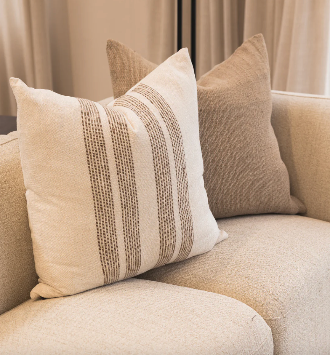 Coastal Charm Scatters in a handwoven cotton and linen-rich scatter with natural palette and organic look. These scatters have a plain back and exclude an inner.