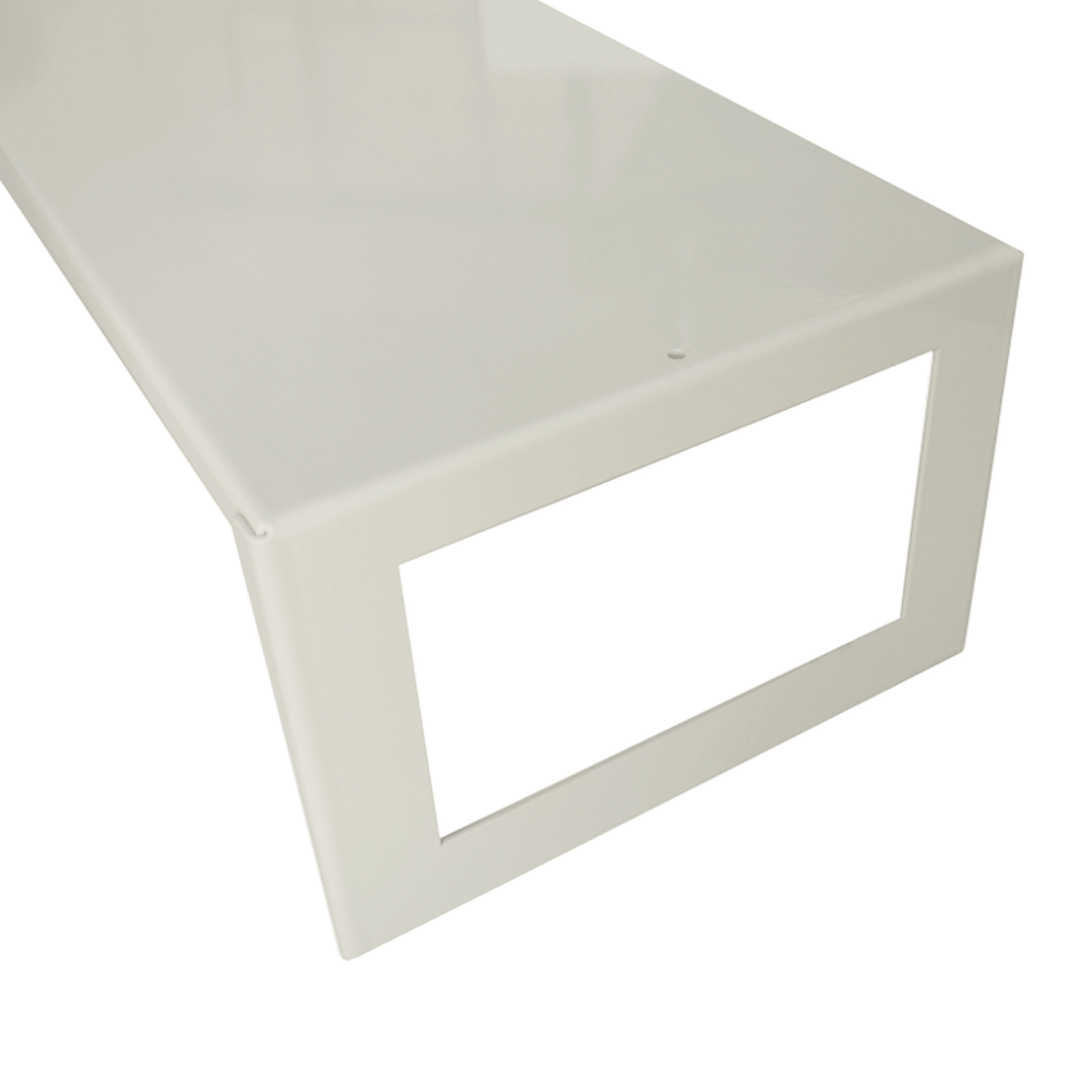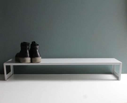 Stackable shelf. Can be used singularly or several may be stacked and bolted together