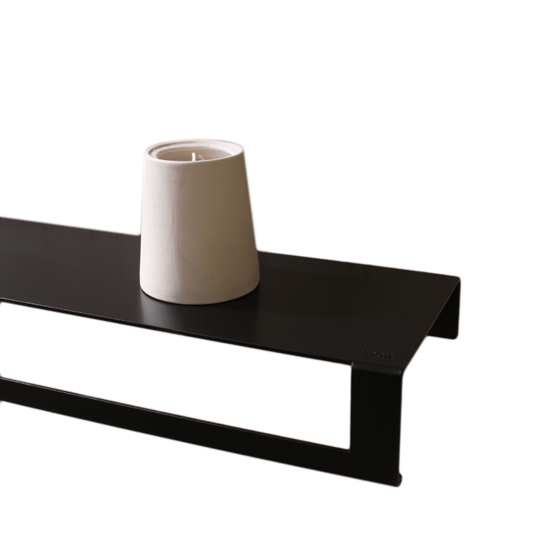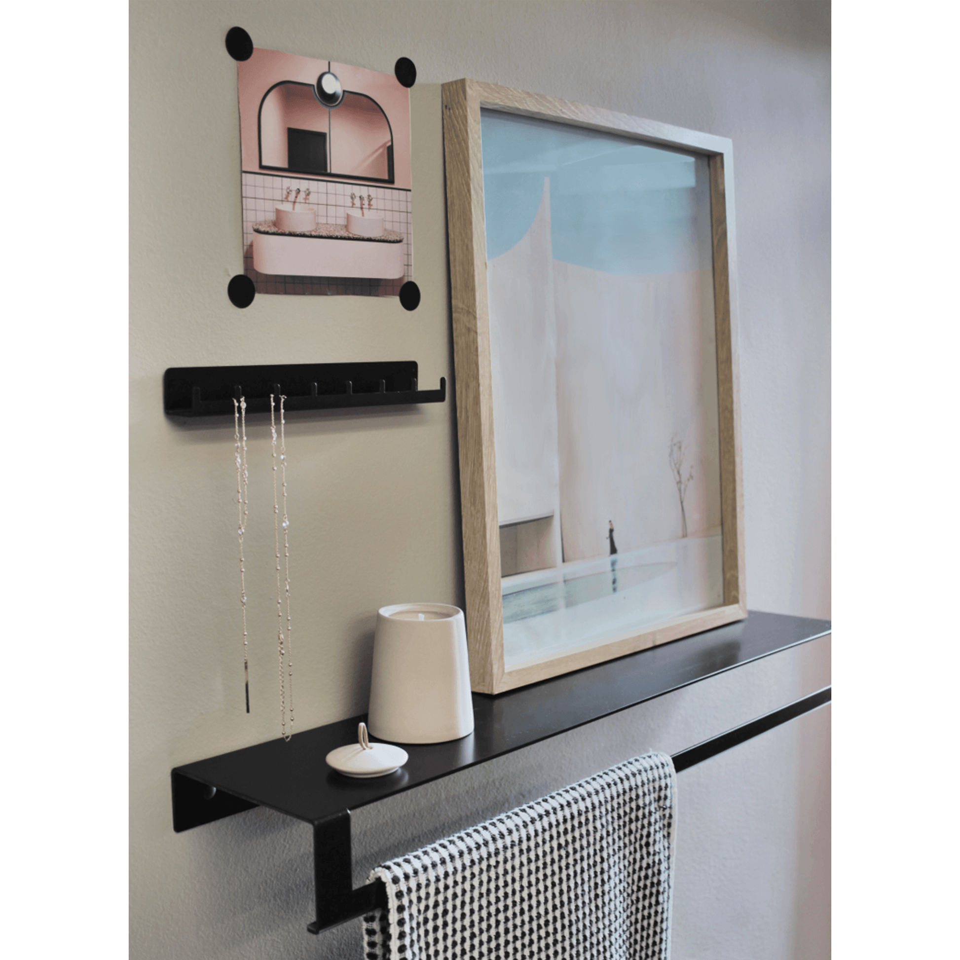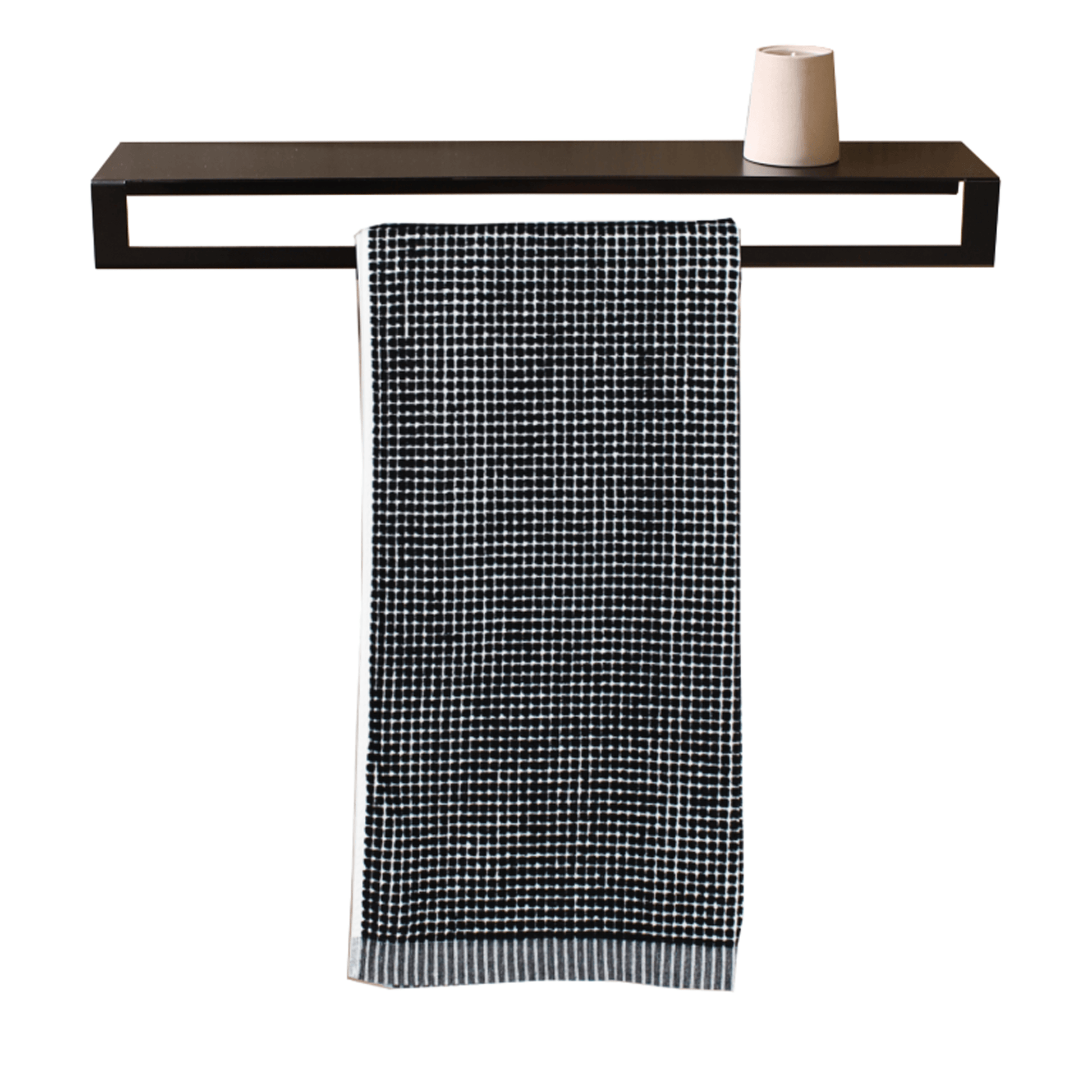Juno shelf with hanging rail. Can be used for hanging towels, scarves, baby clothing and more.