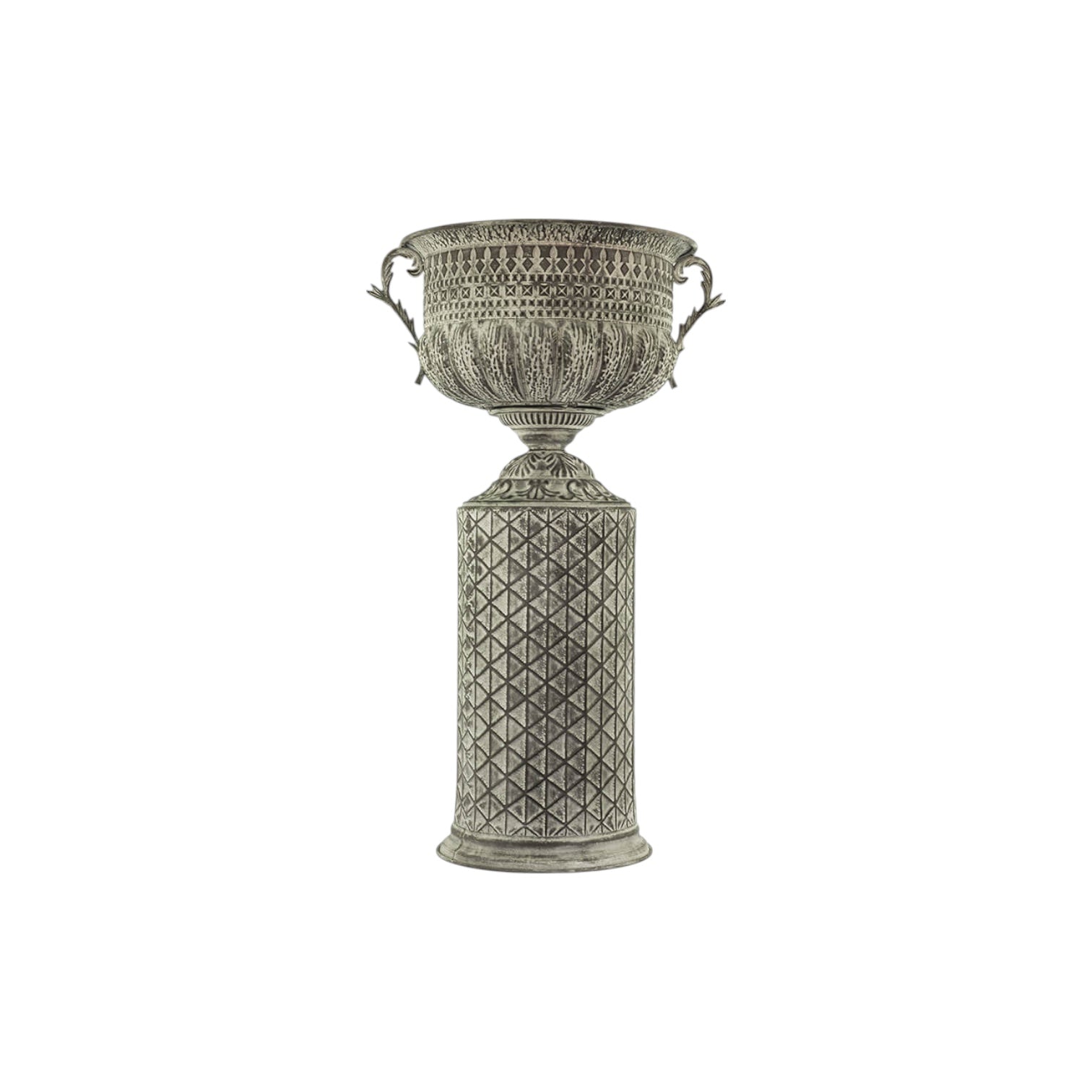 An exquisite metal urn, designed to add grandeur to your space. Perfect for showcasing a stunning plant.