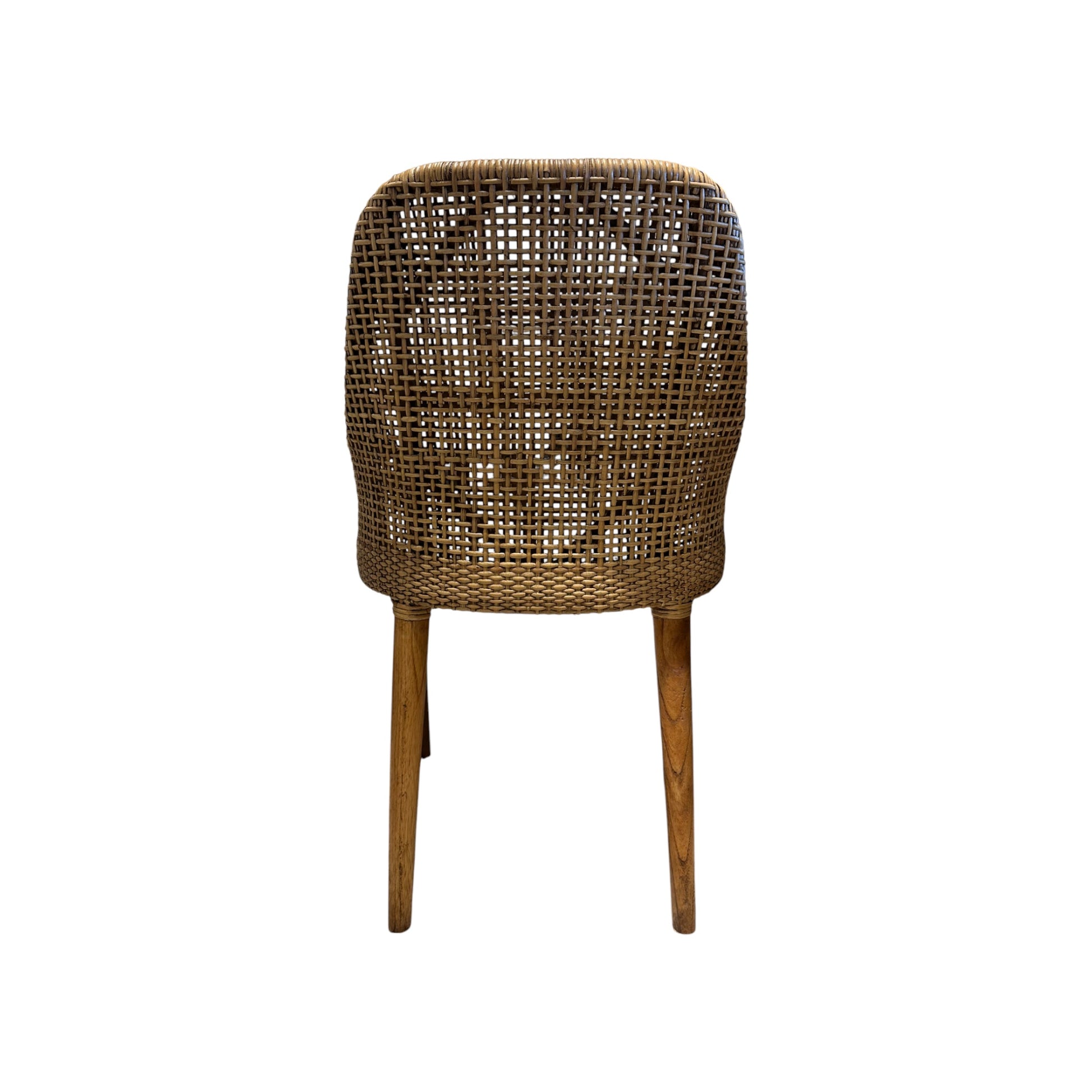 Bring natural elegance and effortless style to your space with the Megan Rattan Dining Chair. Crafted from sustainably sourced natural rattan and Mindi wood, this chair features a sculptural, airy silhouette with gracefully curved lines that invite relaxation. The white upholstered seat cushion provides comfort.