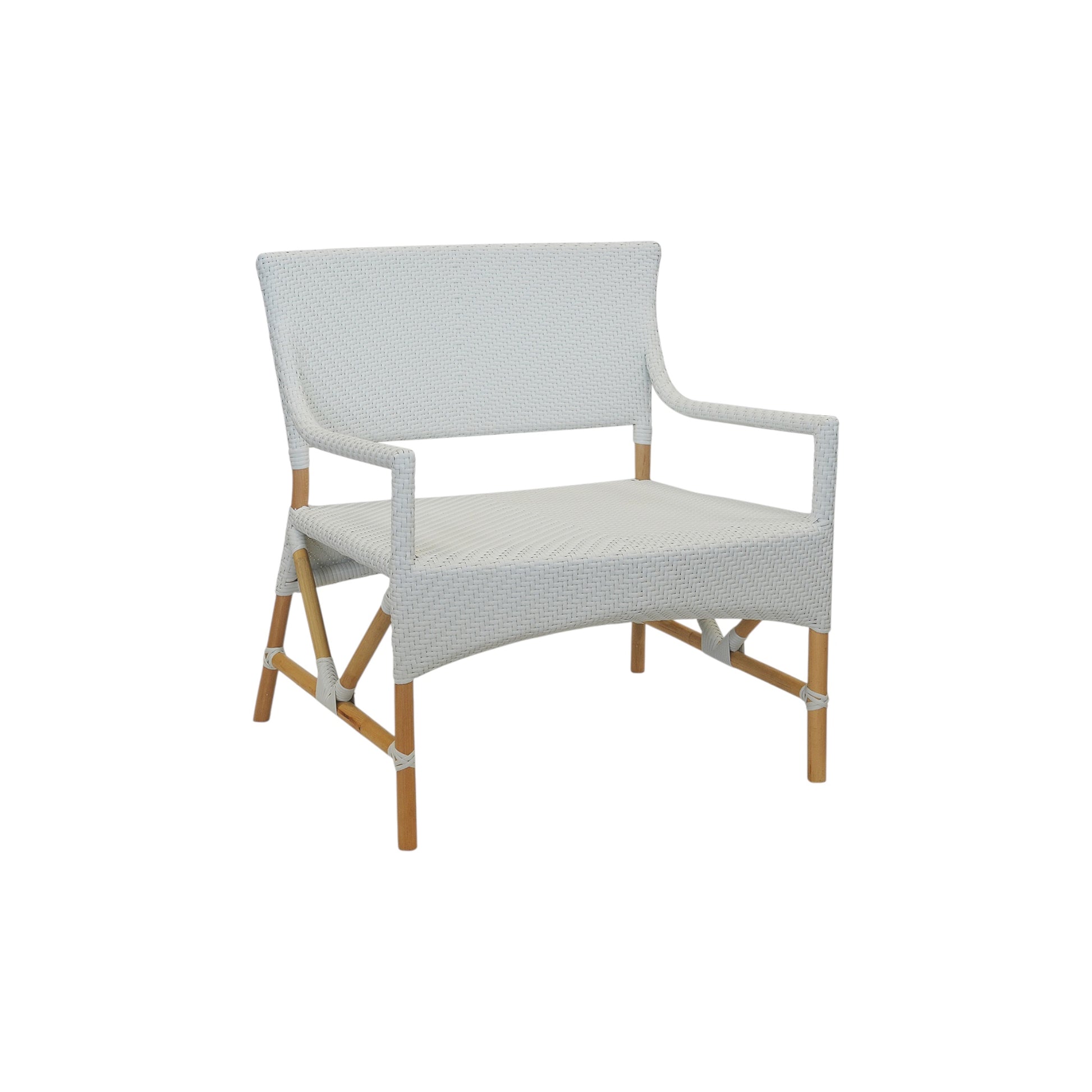 This elegant patio chair offers a stylish spot to unwind. Crafted from durable synthetic white weave, it promises long-lasting comfort and resilience.