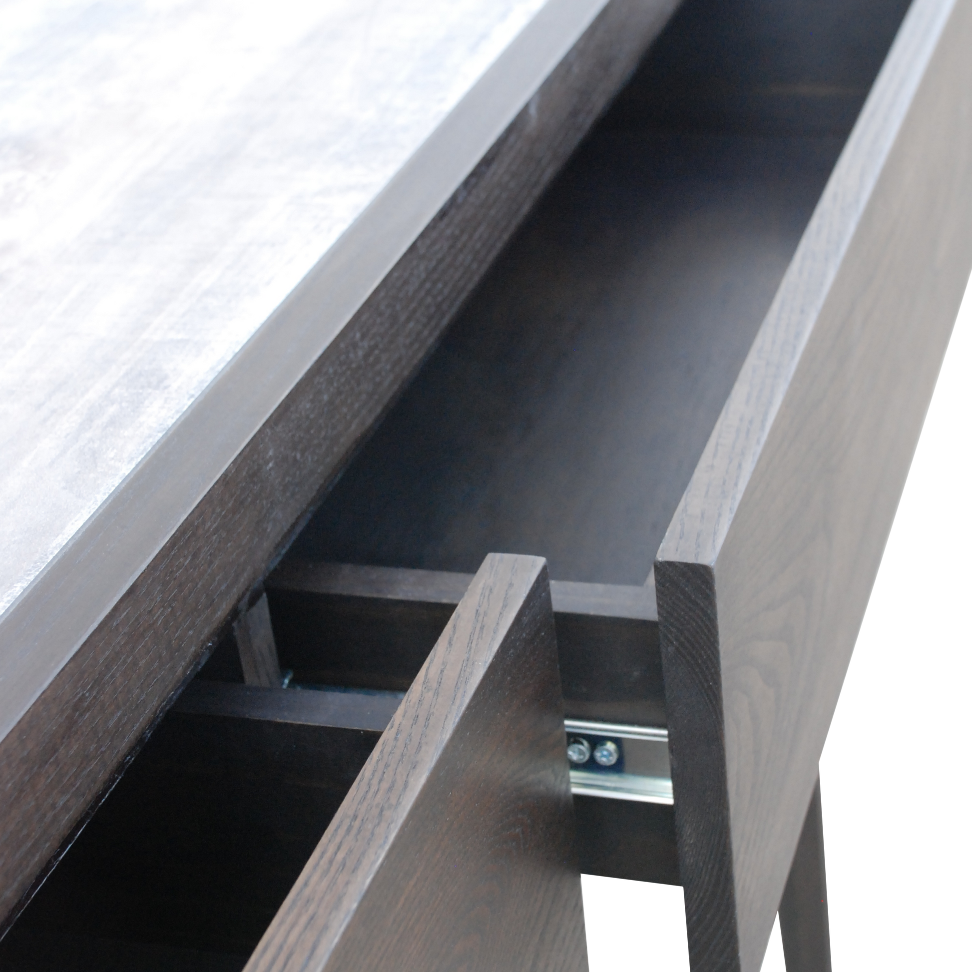 The multi-faceted tapered legs have been thoughtfully detailed to produce a piece with clean, elegant lines with handle-less drawers that slide neatly into the framework, adding to the sleek modern styling.