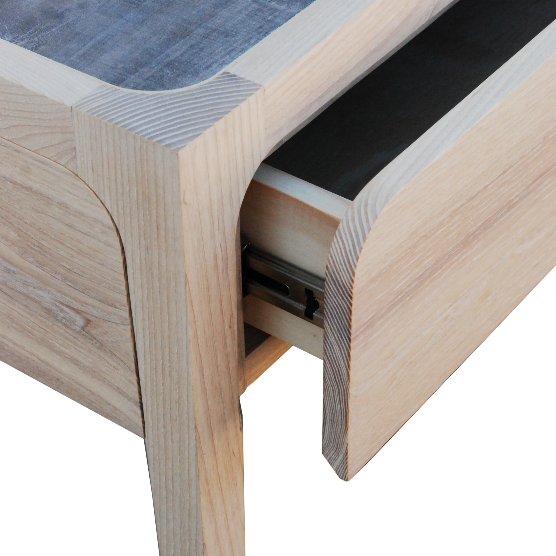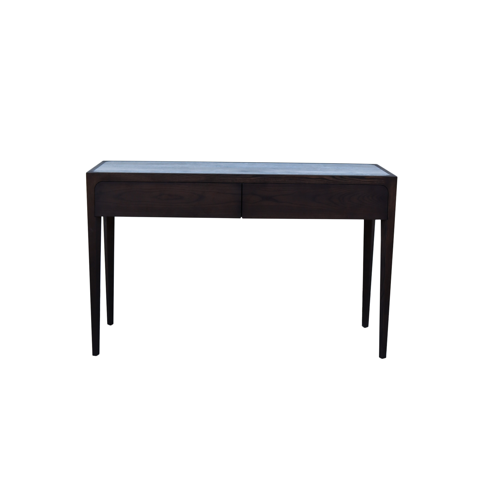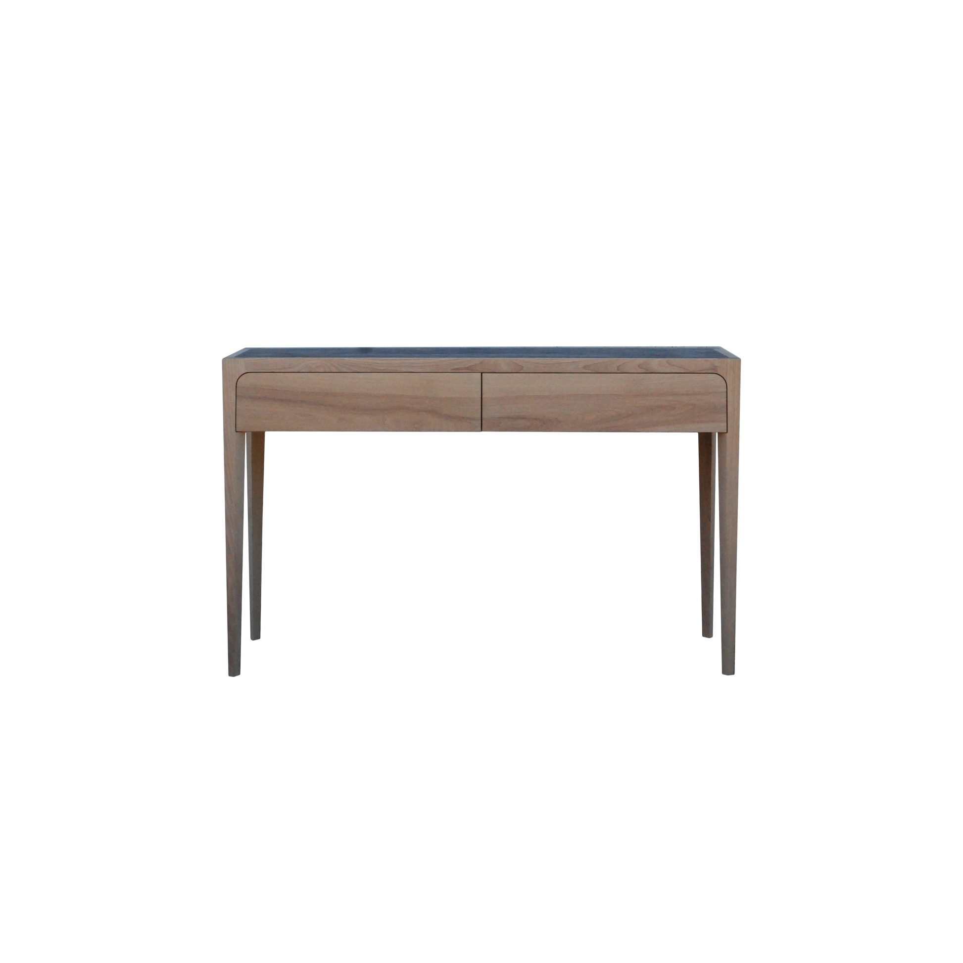 Beautifully crafted from Solid American White Ash with and engineered "Leatherwood" in-lay top and sealed with our Cotton White or Black Oryx tinted furniture oil.