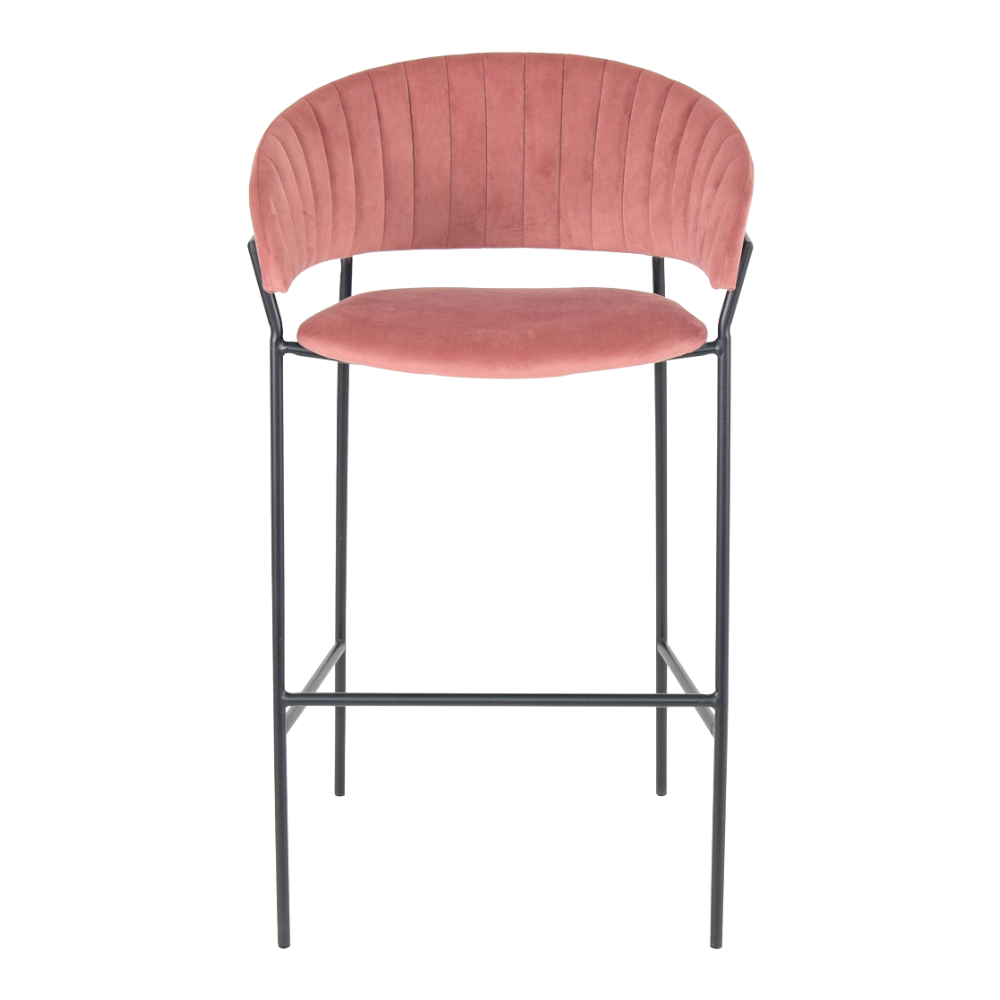 The Padma Glam Bar Stool combines modern design with luxurious comfort. Its soft velvet-upholstered seat and ribbed backrest give additional comfort and support, while the steel base and footrest provide stability. Perfect for modern or contemporary rooms, this stool adds a glamorous touch to any kitchen, bar, living room, or office.