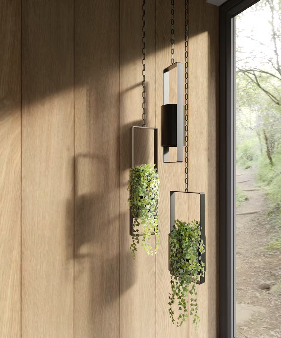 Add a touch of industrial charm to your space with these steel pendant box planters.