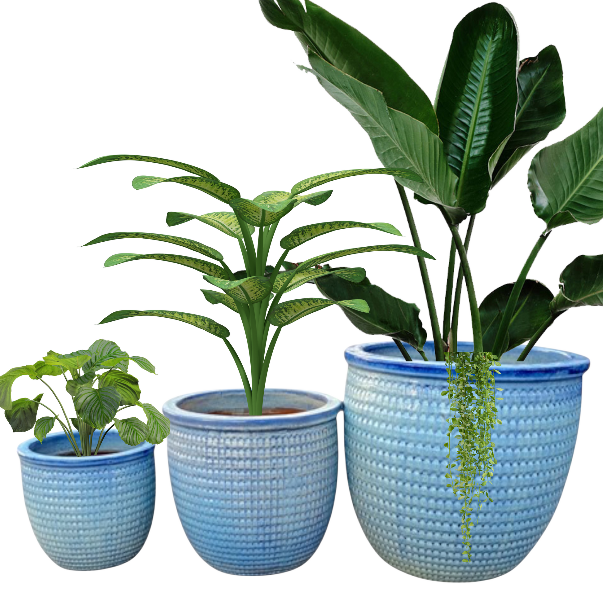 The Powder Blue Planter Set features three pots in varying sizes, these pots effortlessly introduce a refined and distinctive character to your interior decor.