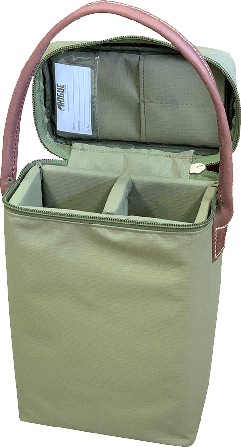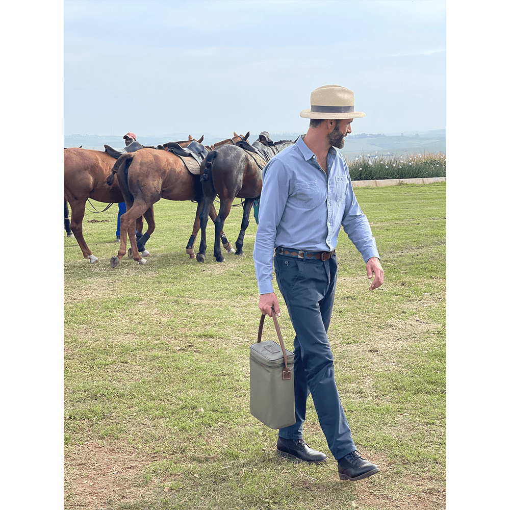 A logical extension to our soft range. Military canvas and genuine leather combine to present a safari-chic, two bottle wine cooler. Drop tested from a height of one metre.