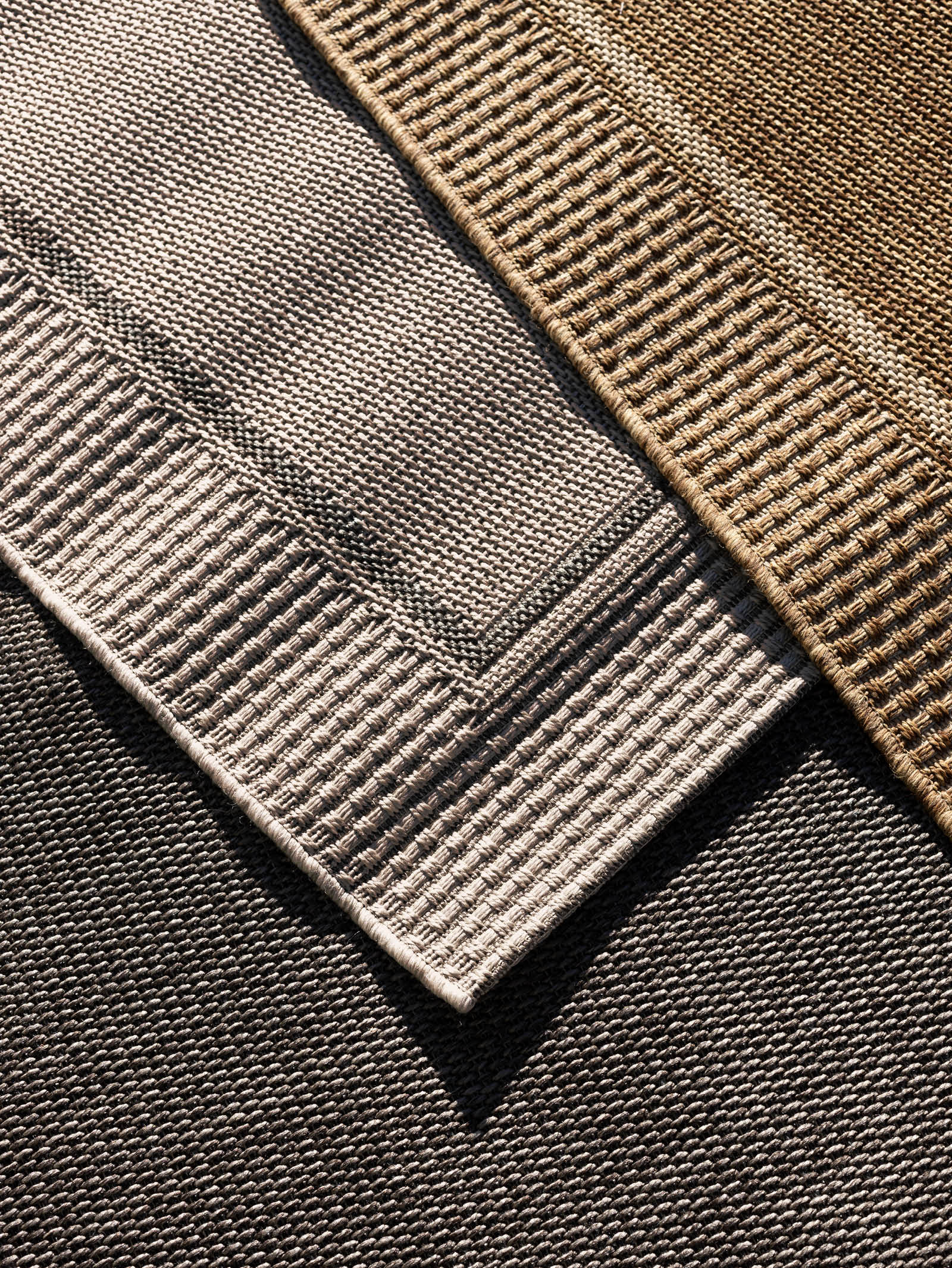 Sometimes a rug just says “summer”, and that is certainly the case with our 100% polypropylene fully outdoor Sundeck rug. Its satisfyingly simple design – a textured border around a melange block in matching tonal variations – brings to mind warm days spent lazing under the sun’s rays. Available in four soft neutral colourways and two sizes.