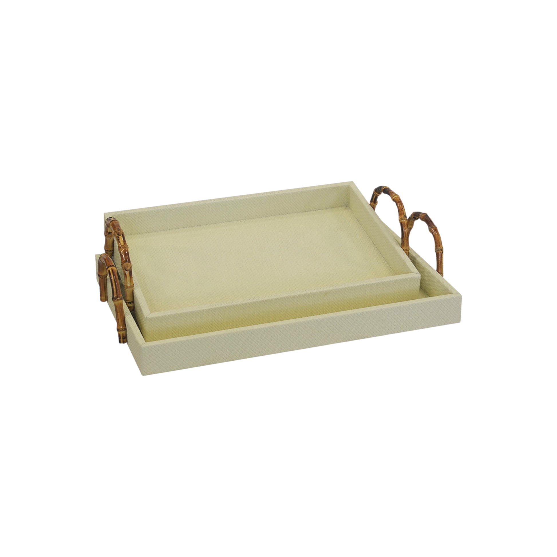These Shagreen trays come in a set of two, perfect for styling your drinks or tea corner with a touch of flair. Their bamboo handles not only make carrying a breeze but also add a fun, natural twist. Pop them on your coffee table for a chic, layered look!