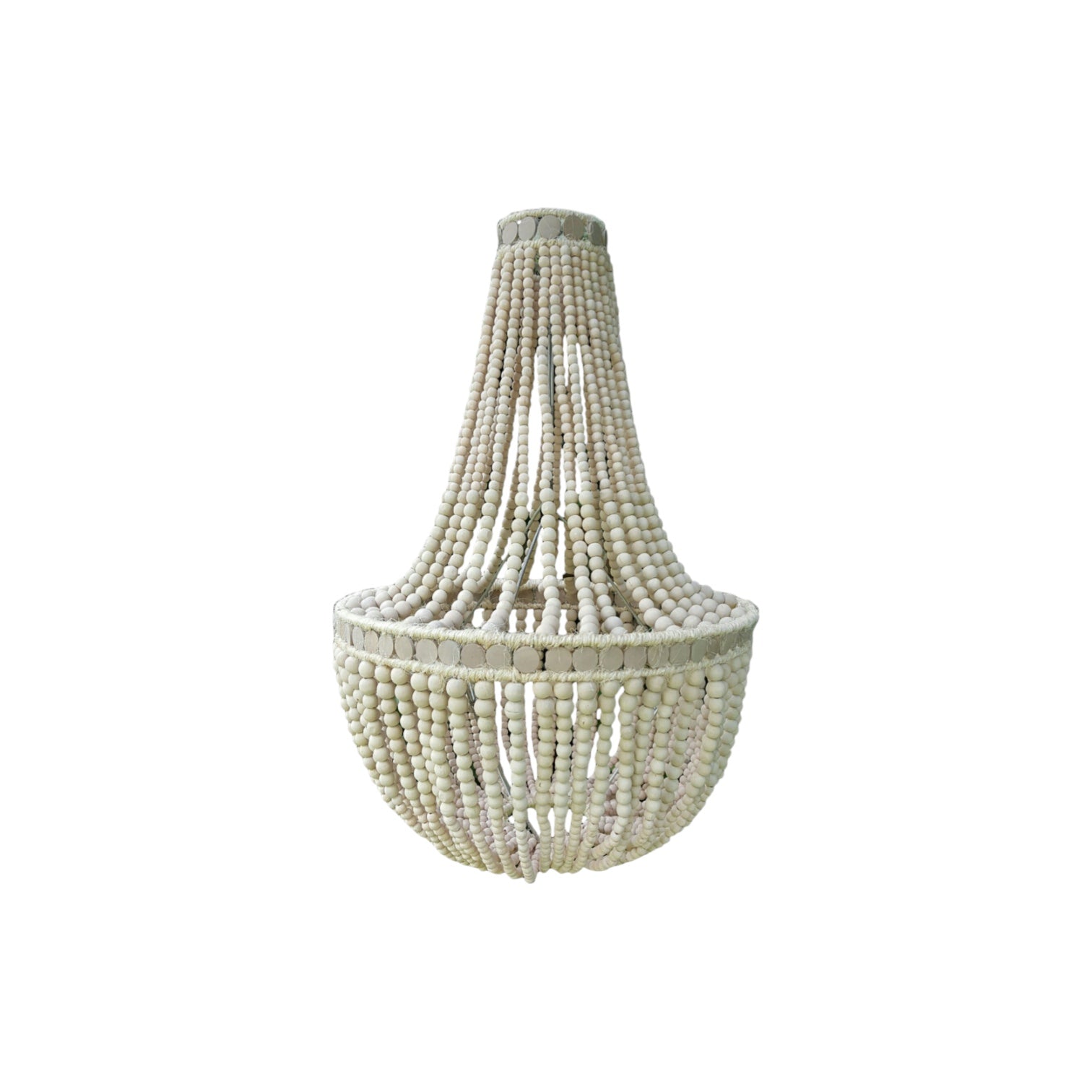 Natural raffia binding and metal coated frame, white electrical set, chain and ceiling cup.