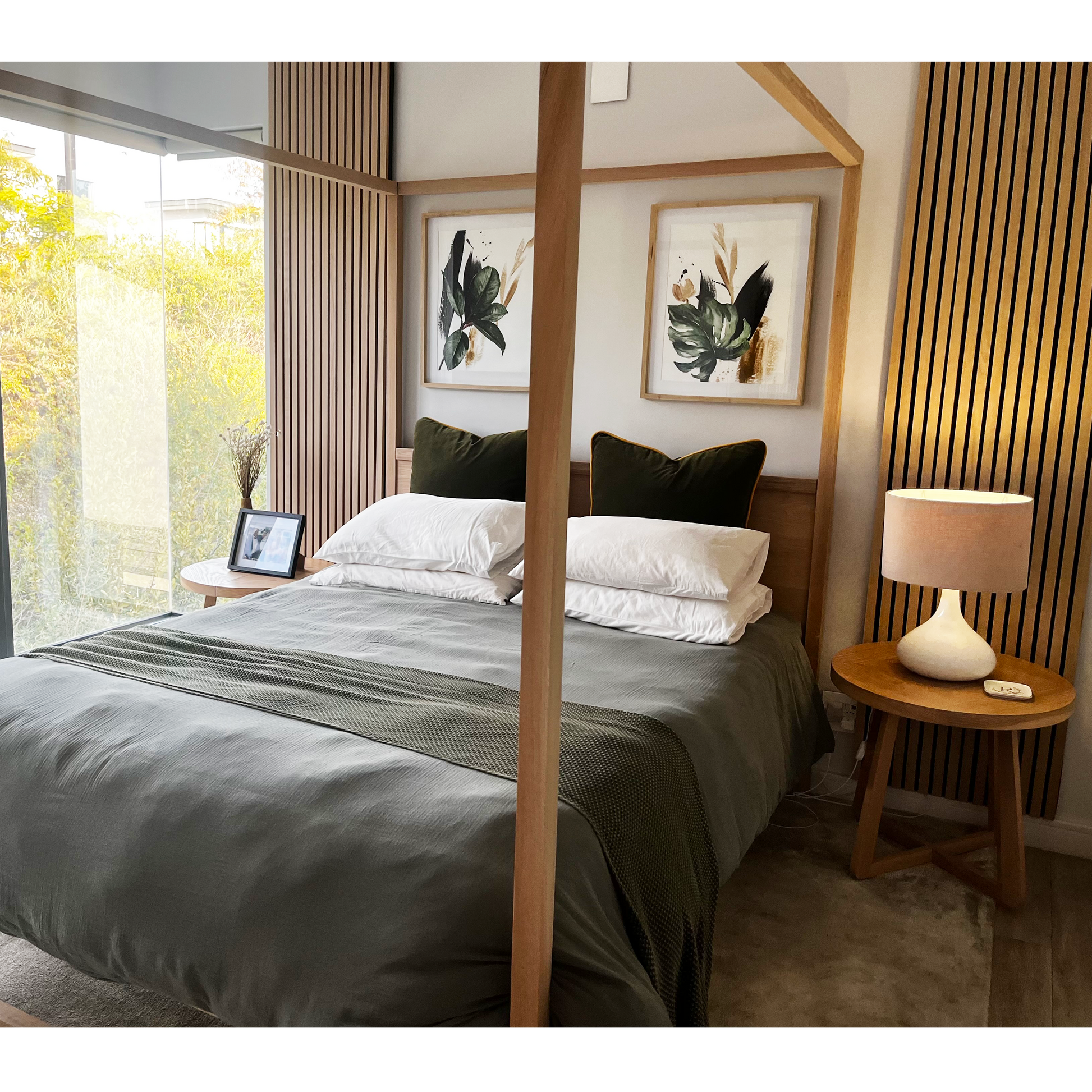 The Umngazi Panel is finished with a natural oak veneer, instantly adding warmth to your space. Our panels create a feature and add texture all while improving your acoustics.