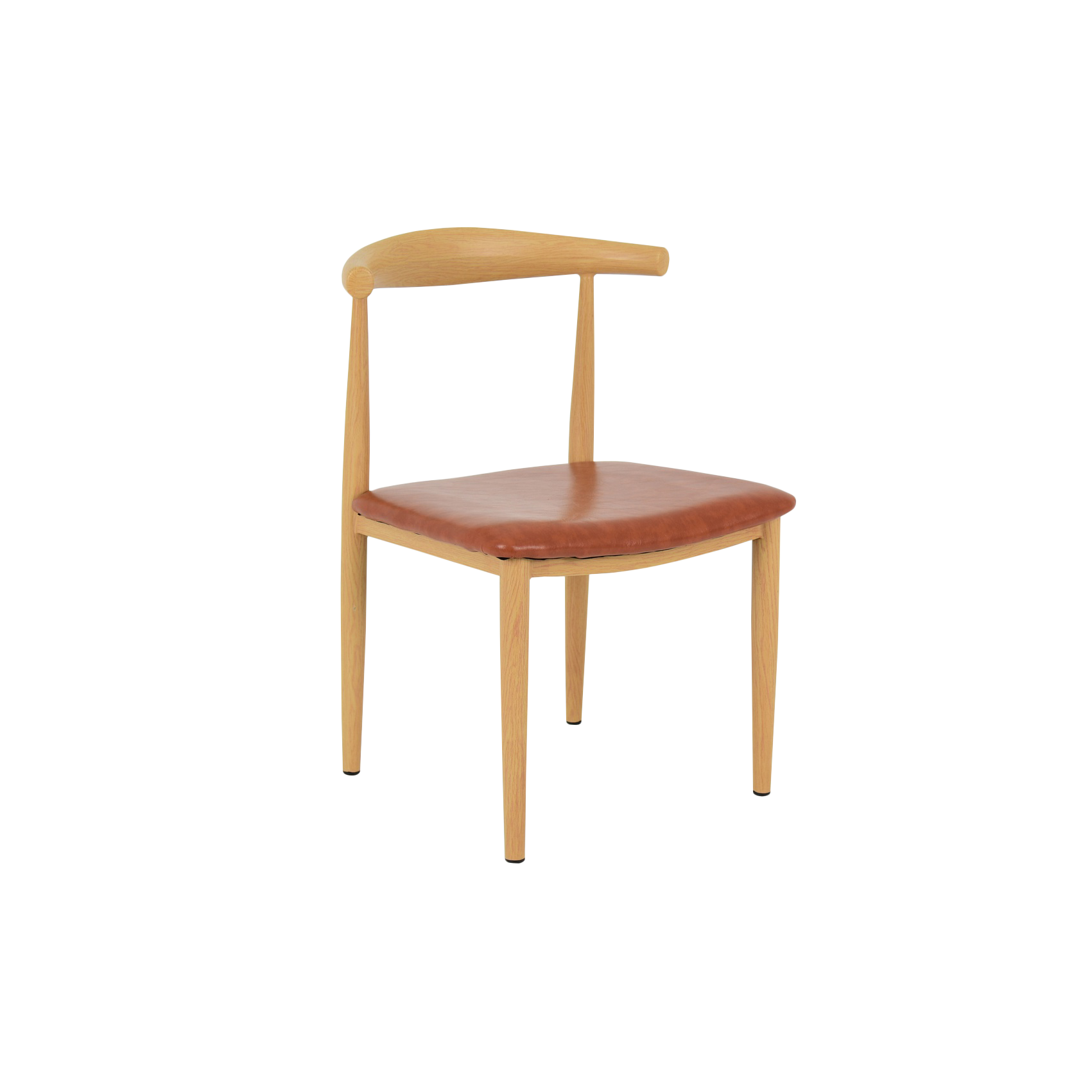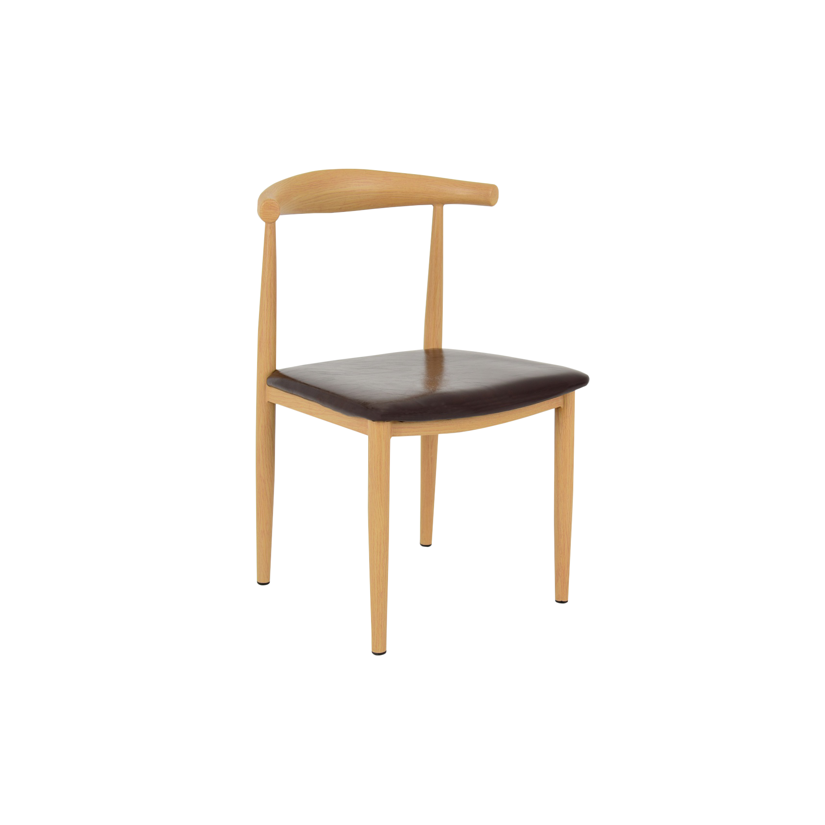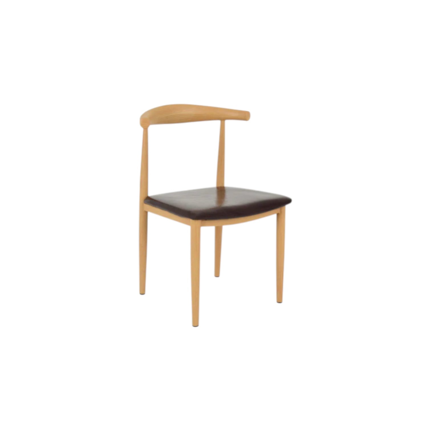 A classic piece of Danish mid-century furniture design. Widely utilized as a dining or occasional chair in stylish contemporary interiors due to its generous size and lightweight structure. Featuring a durable metal frame with a wooden resemblance and a padded, PU upholstered seat for maximum comfort. Ideal as a dining chair, side chair, café chair or feature piece in your home or office.