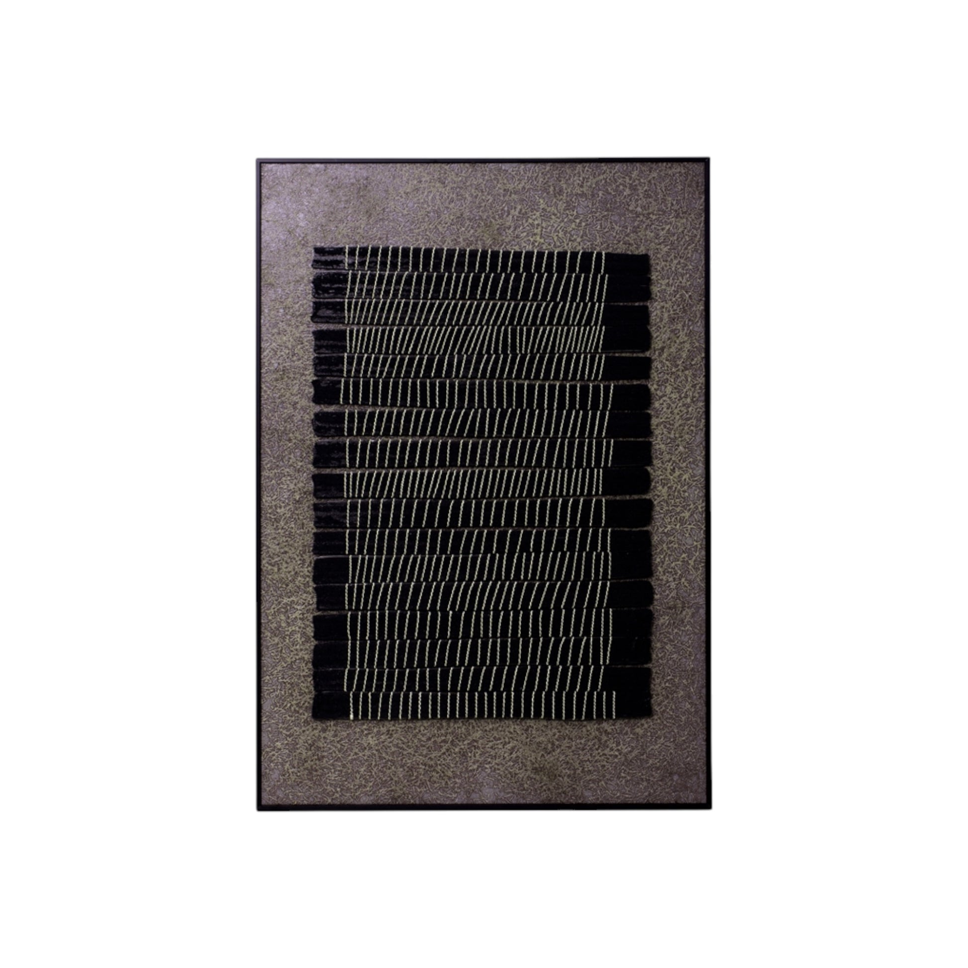 A striking blend of texture and form, this handmade wall art piece features rows of hand-twisted natural rope and wooden pieces, meticulously arranged on a richly textured backdrop. The repetition of linear patterns creates a calming sense of rhythm and balance, while the earthy tones and tactile surface bring warmth and depth to any modern interior. Finished in a sleek black frame, this artwork celebrates craftsmanship and simplicity — a statement piece for spaces that value natural materials and subtle detail.