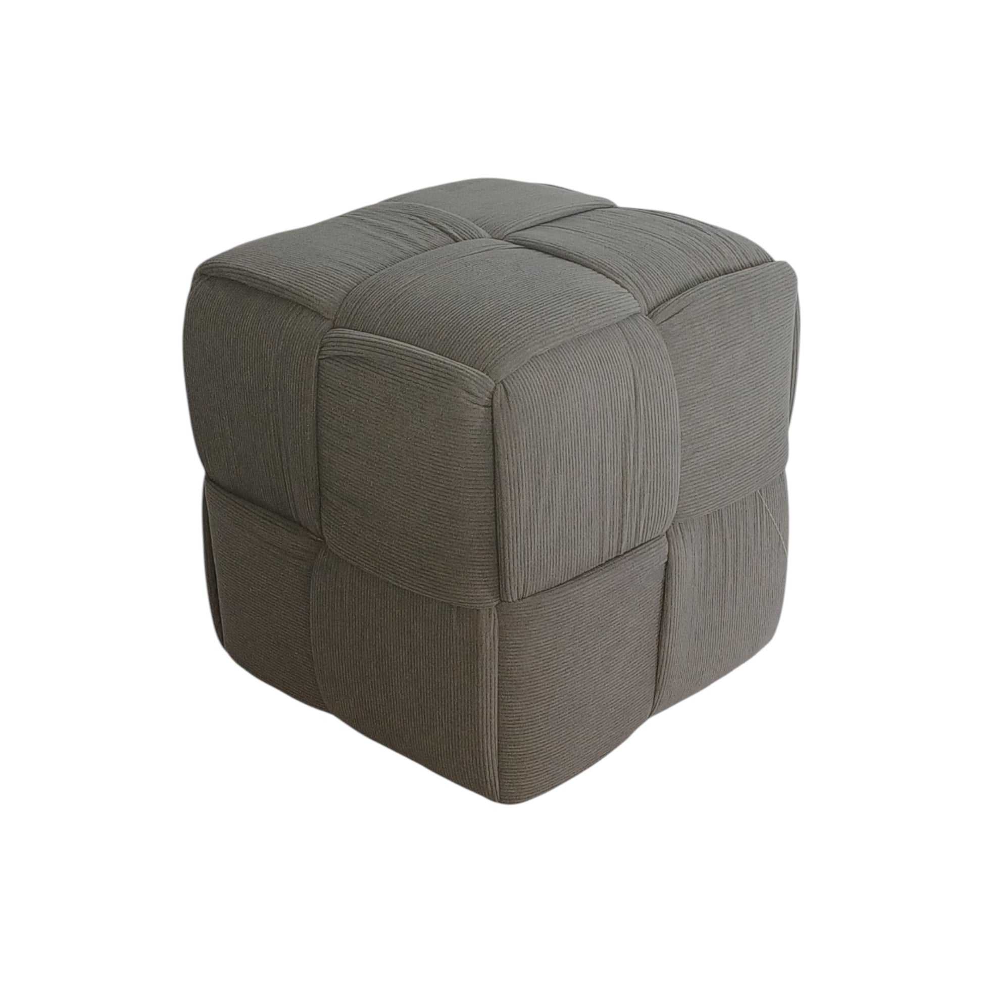 Elevate your living space with this contemporary cube ottoman, beautifully upholstered in soft corduroy fabric. The plush, panelled design creates a modern yet cozy look, while the subtle texture of the corduroy adds warmth and character. Its versatile cube shape makes it a multifunctional piece—perfect as an extra seat, a stylish footrest, or even a chic side table when topped with a tray. The neutral tone allows it to blend seamlessly into a variety of interiors, from modern minimalism to laid-back casual spaces.