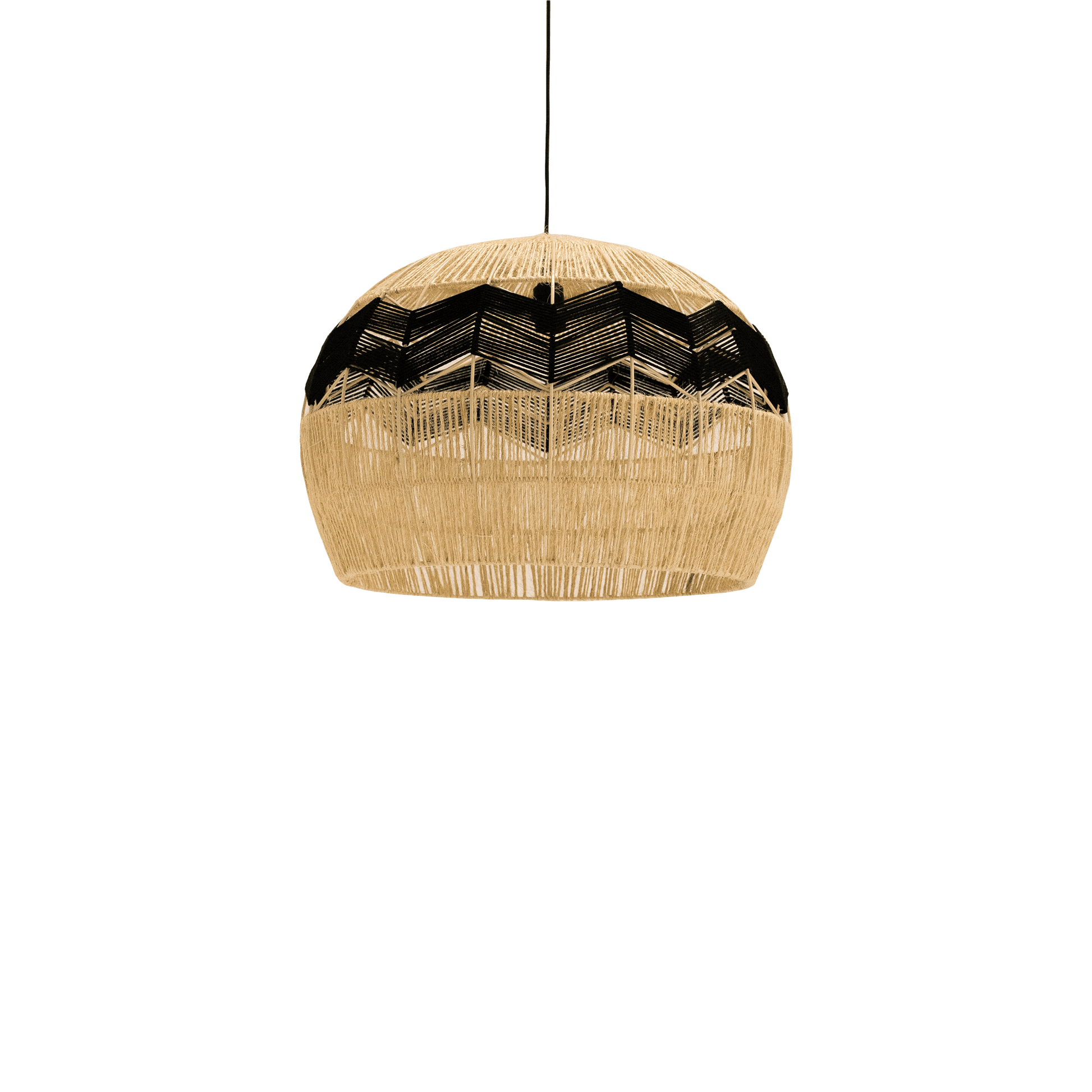 The Zimbali Fat Pendant is a unique design with a trendy edge. Due to the natural quality of this product, each wire strand has been powder coated and then woven with Natural Sisal and Black Rope creating character to the pendant. This is the perfect addition to bring a vibe to your space.